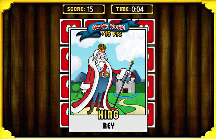 English & Spanish educational quiz- and matching-game with challenging words to complete.