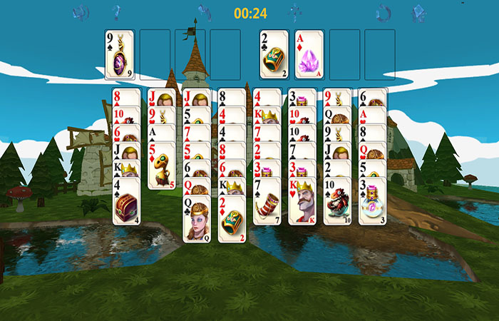 Enjoy playing classic Freecell today with a wonderful castle background and beautifully designed playing cards.